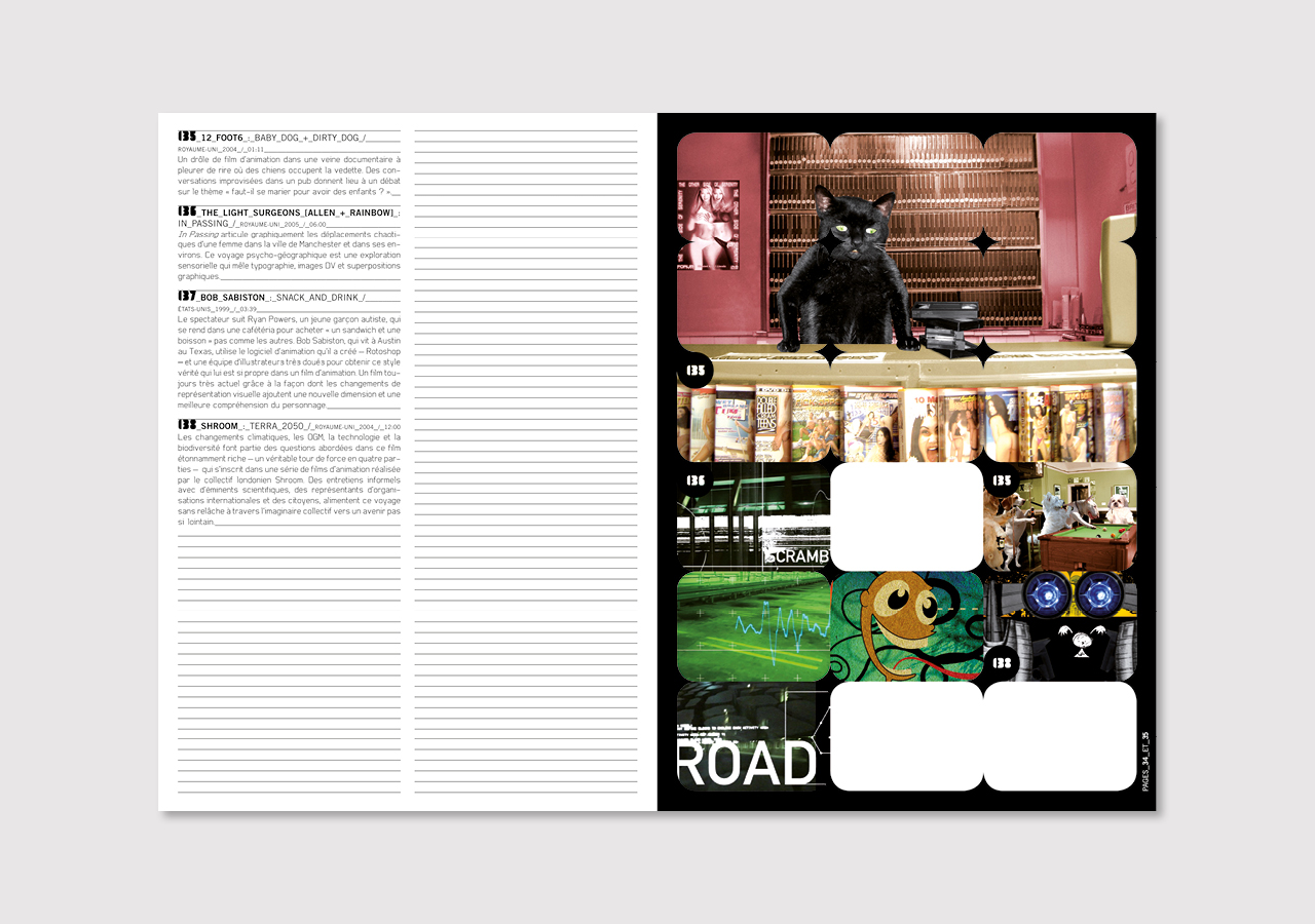 Jérome Delormas prend la direction artistique du Centre d’art contemporain de la Ferme du Buisson en 2004 et nous confie la conception d’un langage graphique qui fasse identité et puisse être un véritable espace de création et d’échange avec les artistes. Nous imaginons donc 2 espaces distincts : l’espace du texte – trame typographique en noir et blanc et l’espace des visuels – carte blanche aux artistes ou création originale d’un visuel par le studio. Des éléments migrent d’un espace à l’autre, les signes voyagent et se transforment.